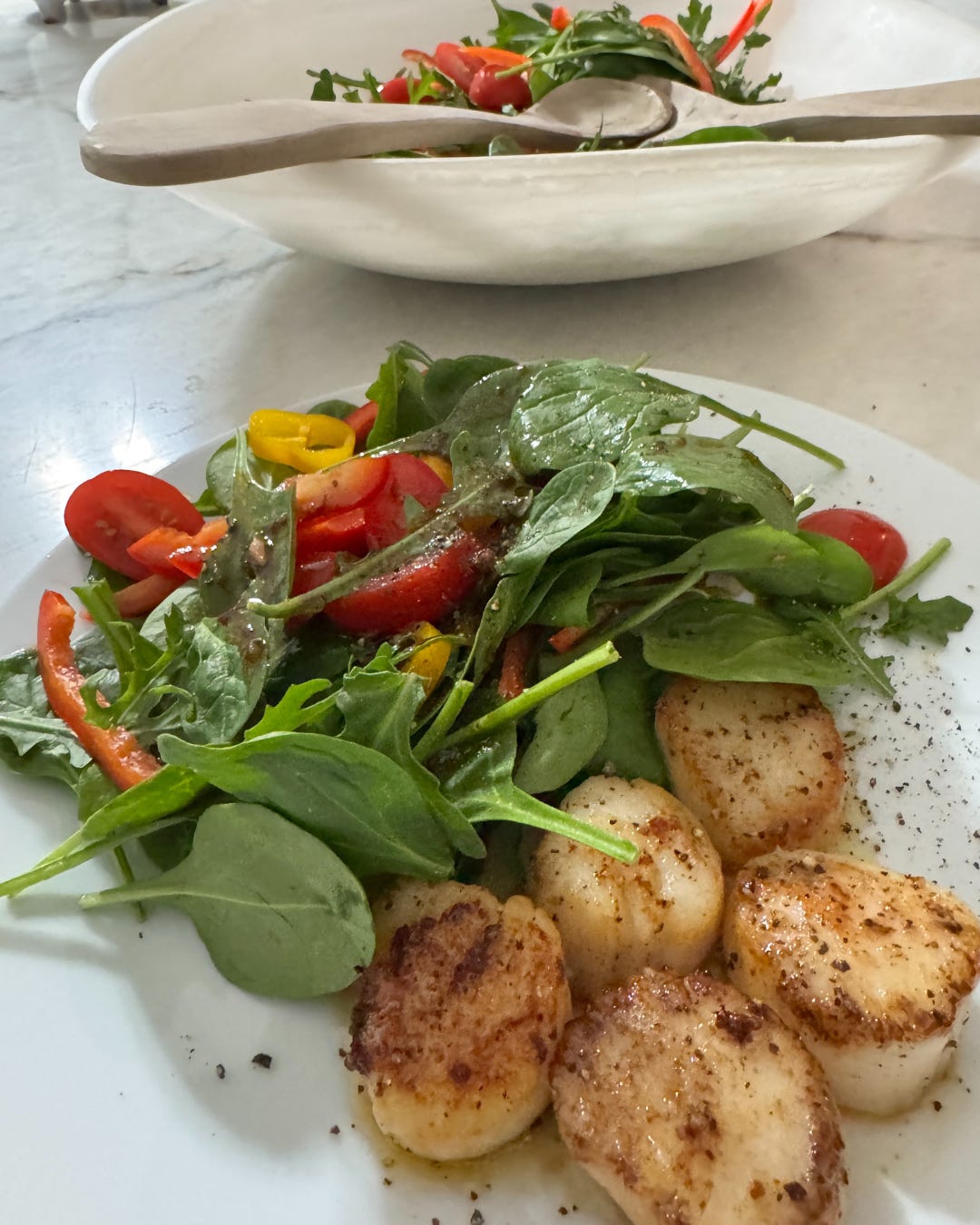 After a long day, the last thing I want is a complicated dinner. This is one of those meals that comes together quickly but still feels intentional. Scallops seared in butter, a simple salad built from good store-bought greens, and a jar of dressing already waiting in the fridge. It’s the kind of plate that looks thoughtful, tastes balanced, and gets you fed without another hour in the kitchen.