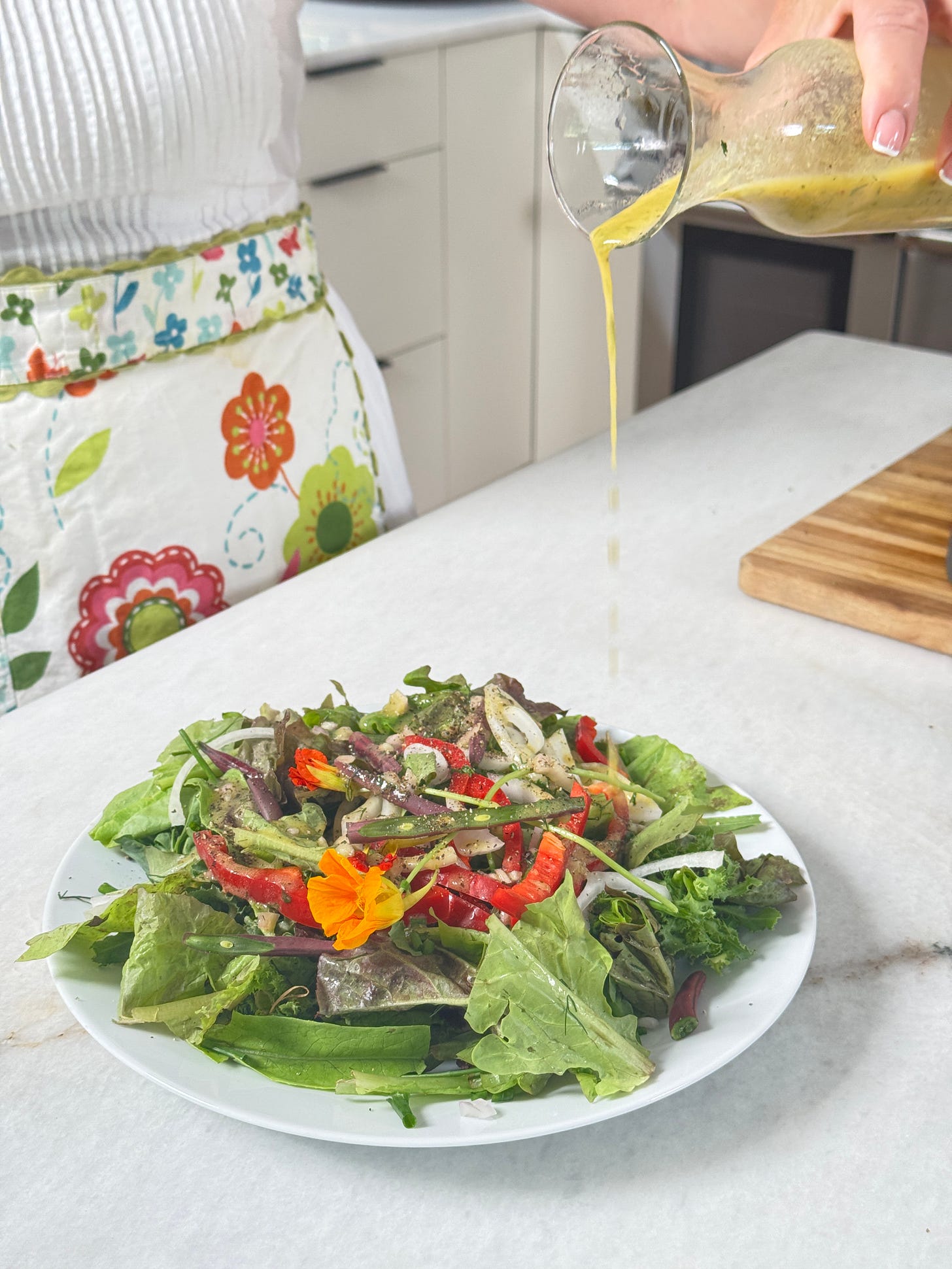 Living simply in the kitchen means releasing the need for perfection. The magic ratio: 3 parts oil to 1 part acid. That's it. Everything else is intuition, mood, and what's in your kitchen.
